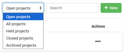 To search for a project navigate to the top right hand corner in the 'Projects' window.