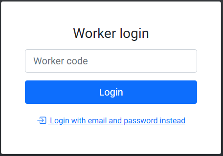 You can switch between worker login code and email and password login using the link at the bottom of the login form on both the mobile app and desktop site.