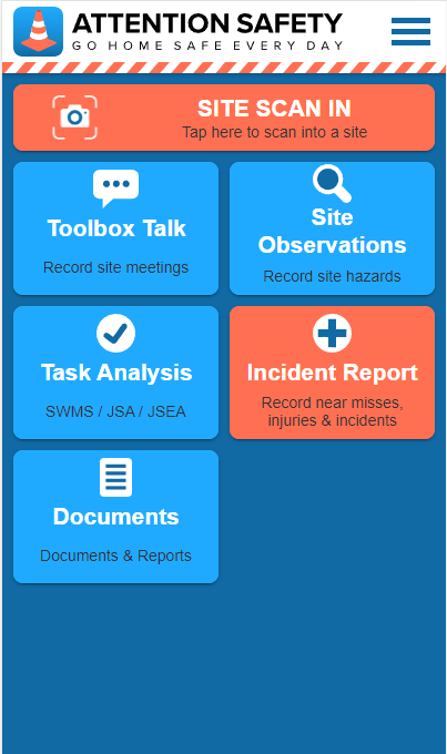 The different ‘activities’ listed above are launched by tapping the tiles on the ‘home screen’: