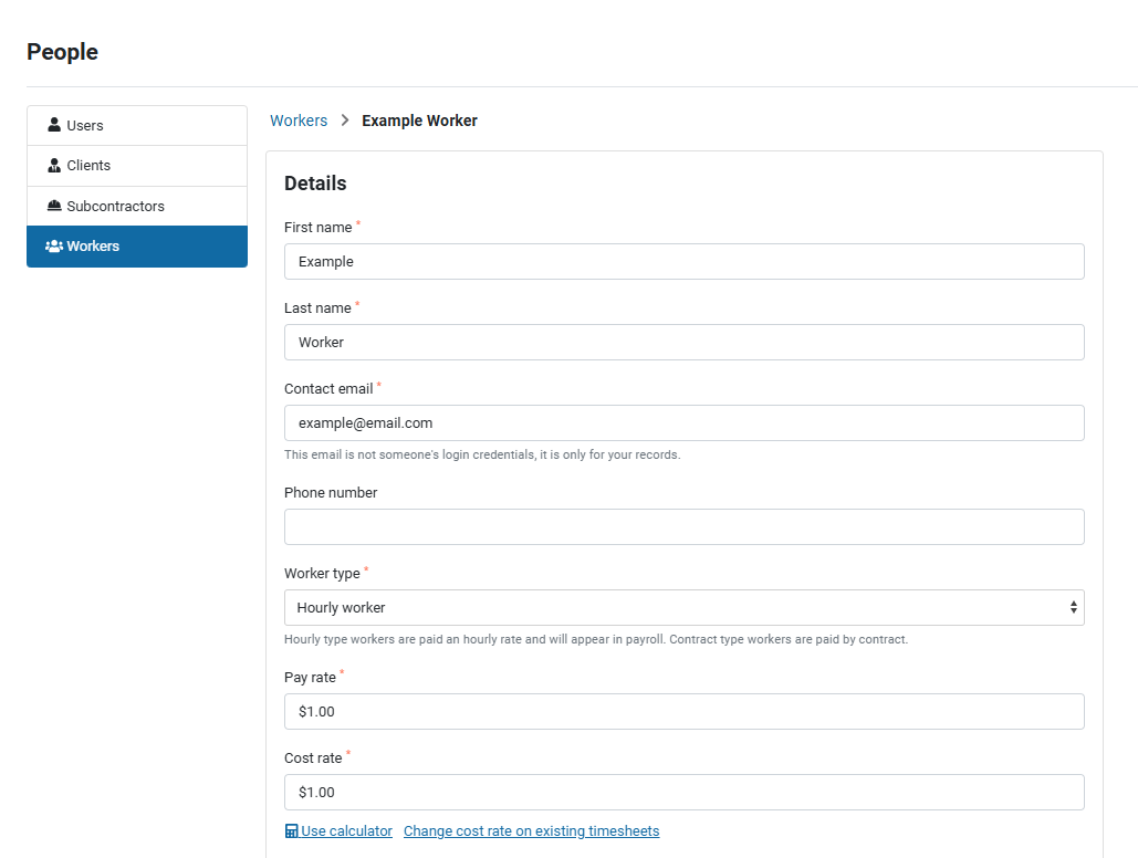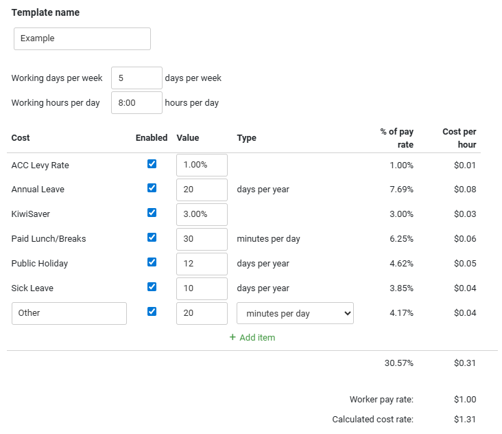 If you need to change the costs for any of your workers or adjust your organization cost calculator template, below are the steps to add a new template to the cost calculator, edit a template and update a workers costs using the cost calculator.